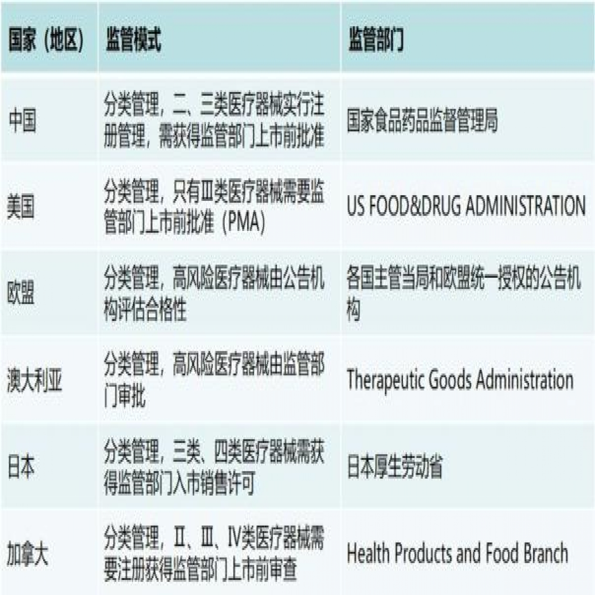 中國的醫療器械監管模式借鑒了美國和歐盟的監管經驗,與大多數國家一樣對醫療器械實行分類管理,同時既有上市前審批,又有上市后監管。2014版《醫療器械監督管理條例》(國務院第650號令)是我國現行的醫療器械監管最高層